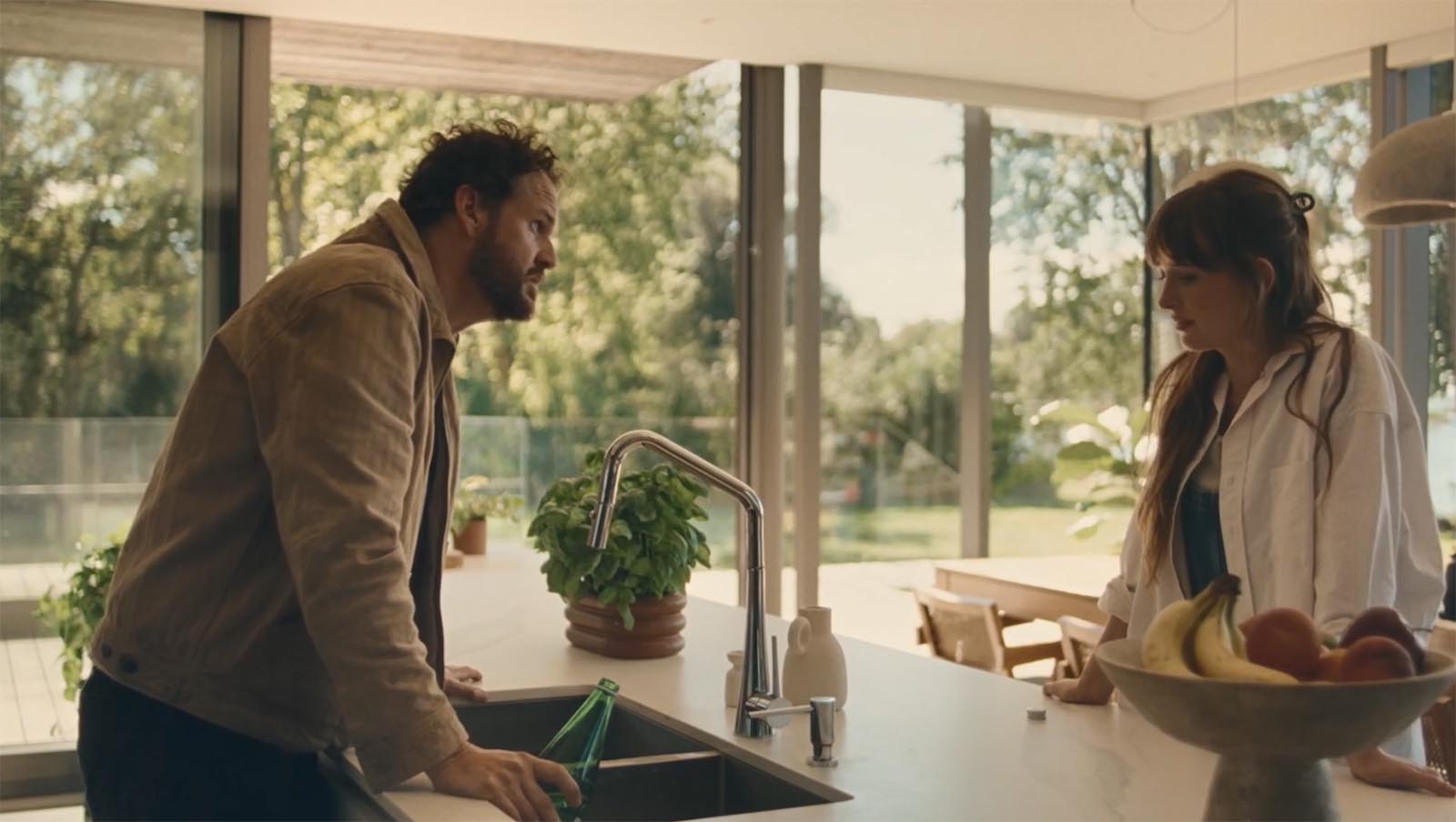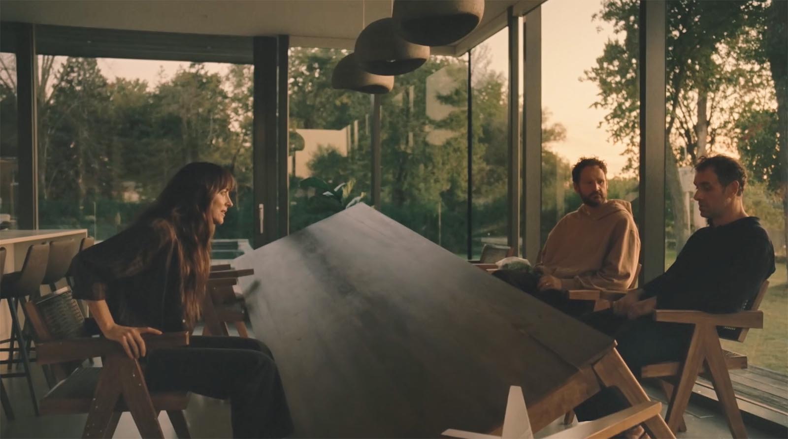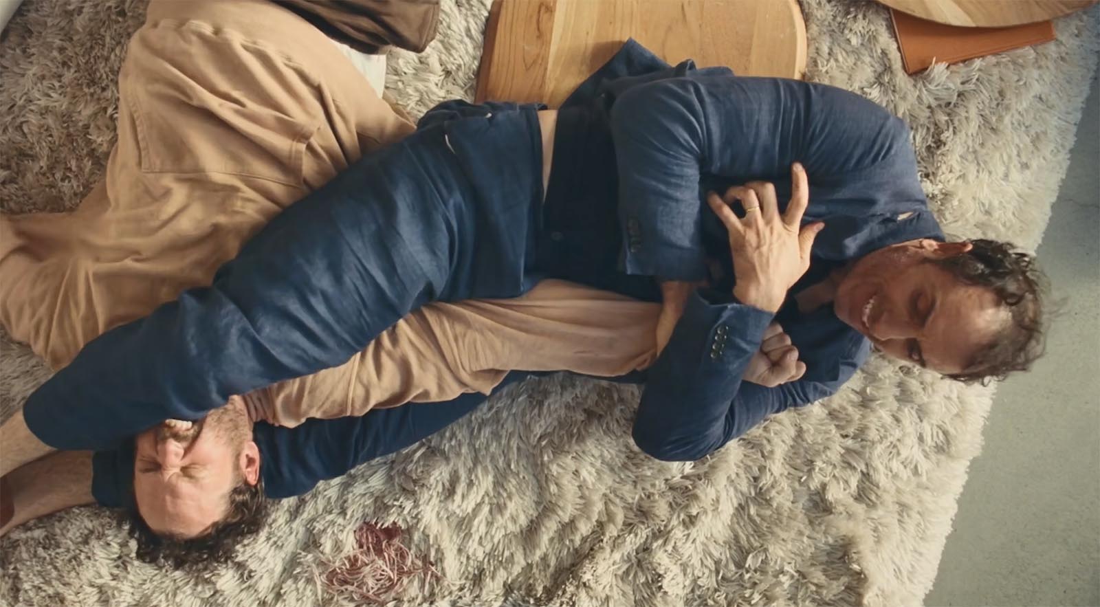 Baumas izplešas draugu lokā, un kopīgas vakariņas, kas domātas kā skaidrošanās, izvēršas farsā pie akvārija - neveikls grūstīšanās, nepareizi laiki atzīšanās un aizvainota lepnuma koris. Māja pielāgojas kā skatuve: nedēļas nogales prom, sān durvju ierašanās, istabas, kas glabā noslēpumus, kurus neviens vairs nespēj noturēt.